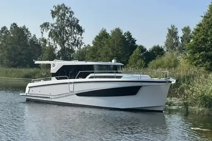 Enjoy effortless cruising in this easy to handle 10 Metre boat. Bow and Stern thrusters make any docking manouvre possible. Simple and efficient operation with small diesel engine.