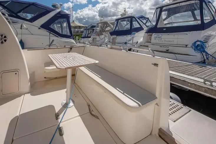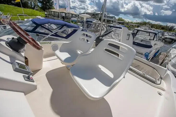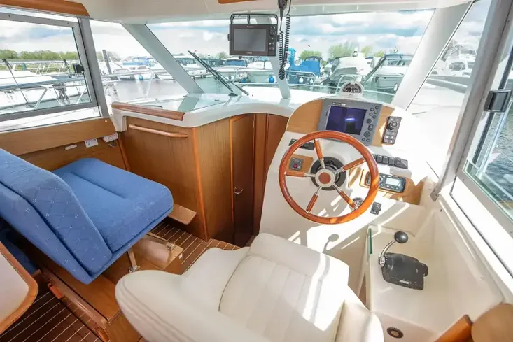 The Jeanneau Merry Fisher 925 is powered by a Volvo Penta D4 260hp diesel engine. This boat is an attractive and efficient flybridge option for cruising.