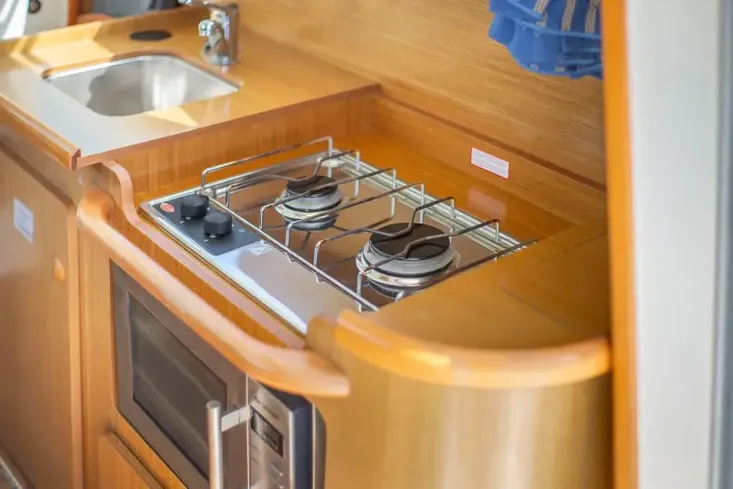 - Galley with stainless steel sink and faucet