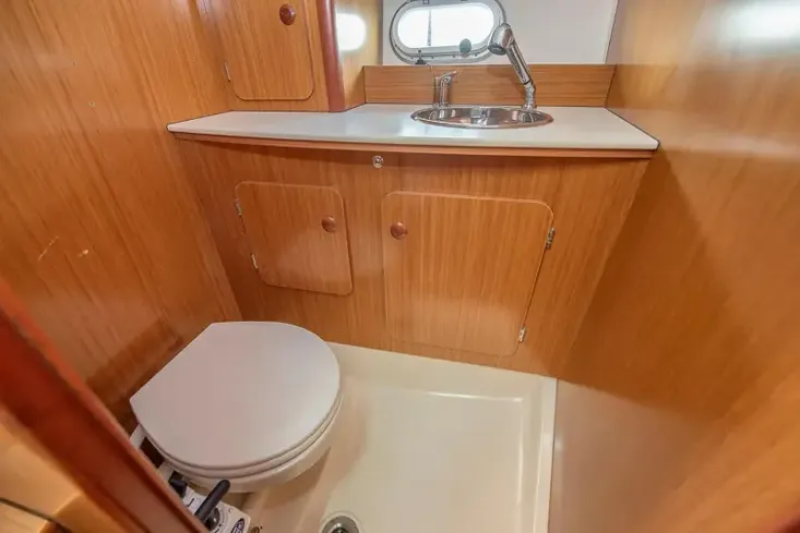 - Forward cabin with a double berth
